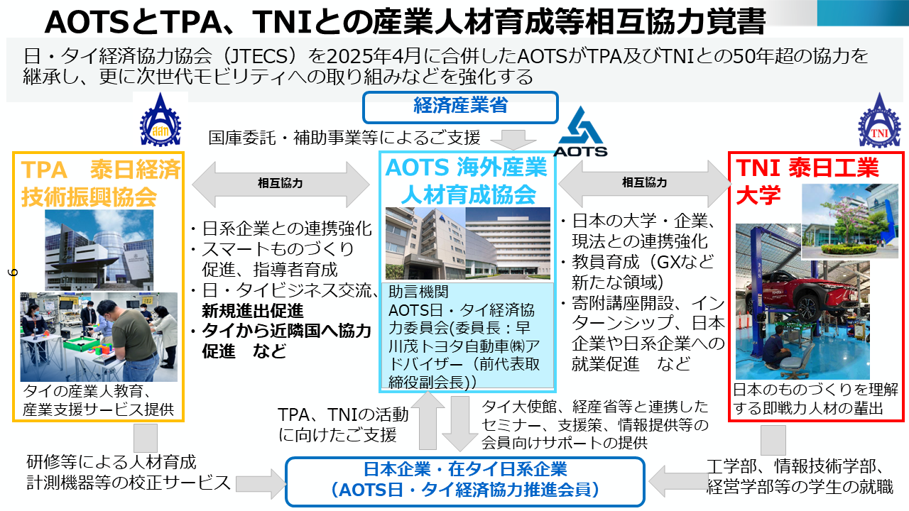 - ① AOTSとTPA、TNIとの産業人材育成等相互協力の概要