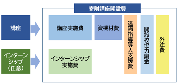 寄附講座開設費は、講座にかかる費用とインターンシップにかかる費用で構成されます。