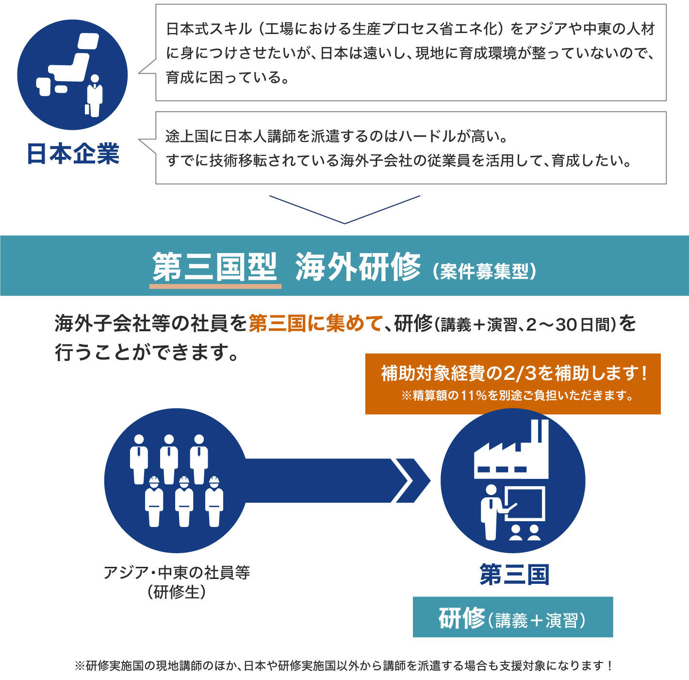 | 実施形態 | 日本を除く研修生の勤務地国以外の第三国に集合させて行う研修 |
